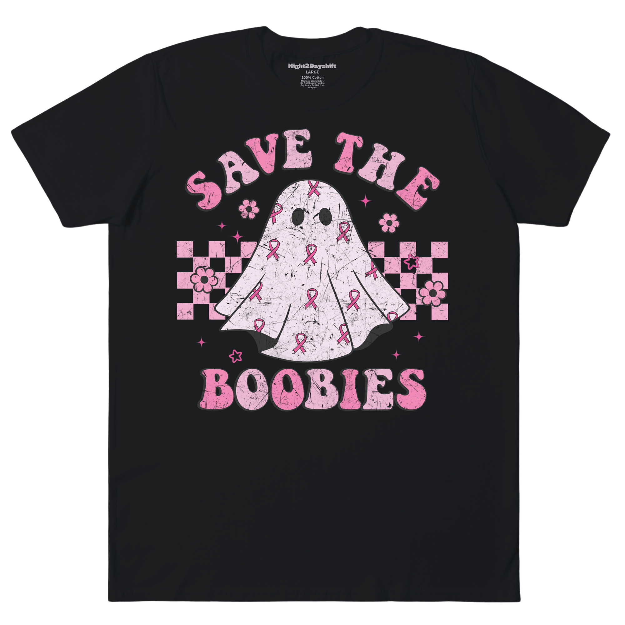 Super soft and spooky-cute, this retro-styled ghost is draped in pink ribbons for breast cancer awareness. Ready to spook everyone into remembering one thing—get your screening, ghoul-friend! It's funny, and fearlessly supportive, reminding everyone that early detection is the real treat. Because this year, we’re haunting for healthy boobies, not hiding from them. Perfect for rallies, walks, or just haunting your co-workers and friends with encouragement to save the boobies.